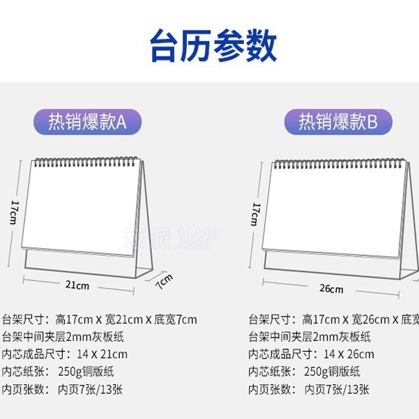 台历 : 双铜纸250克、双面26P